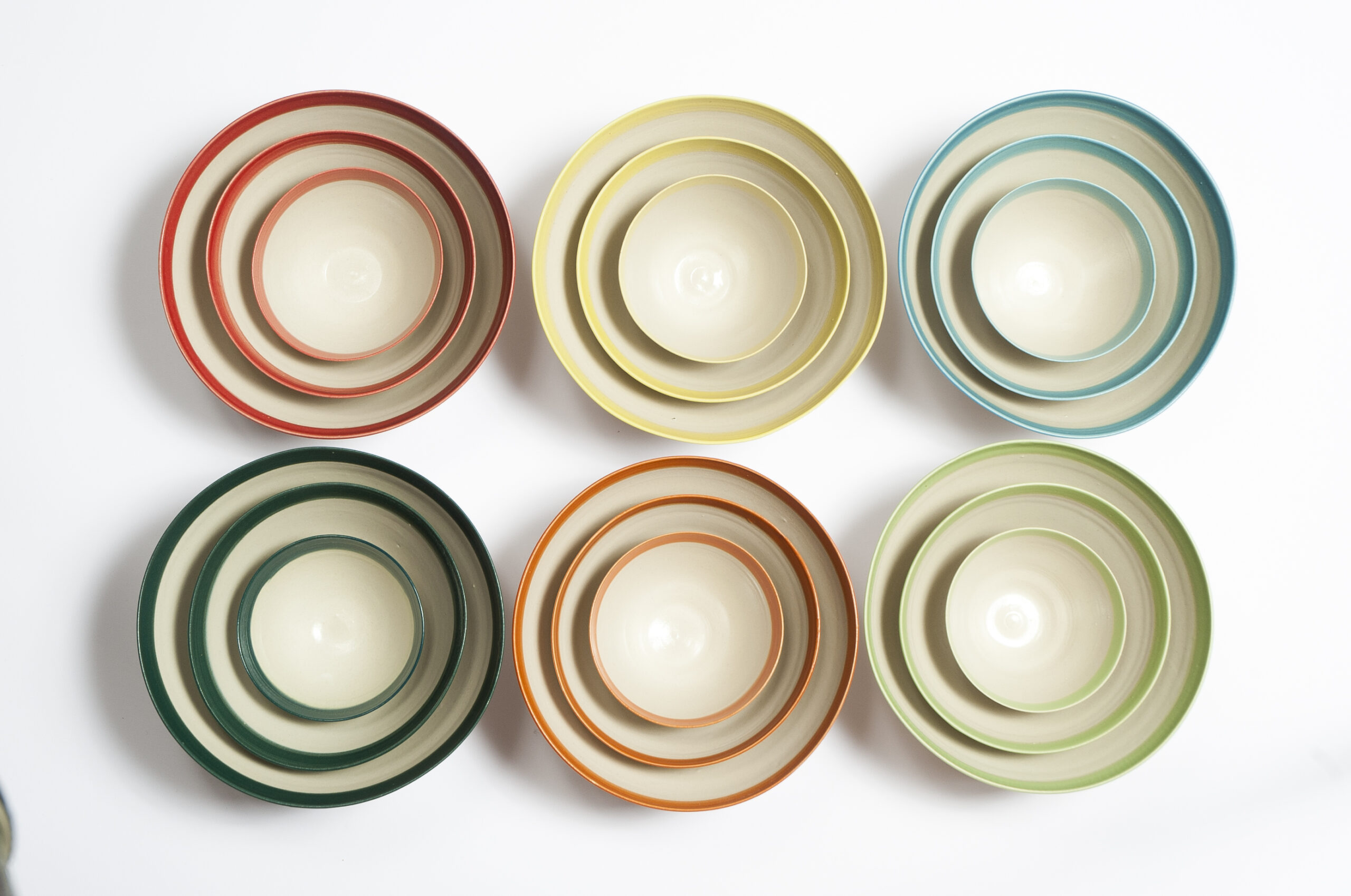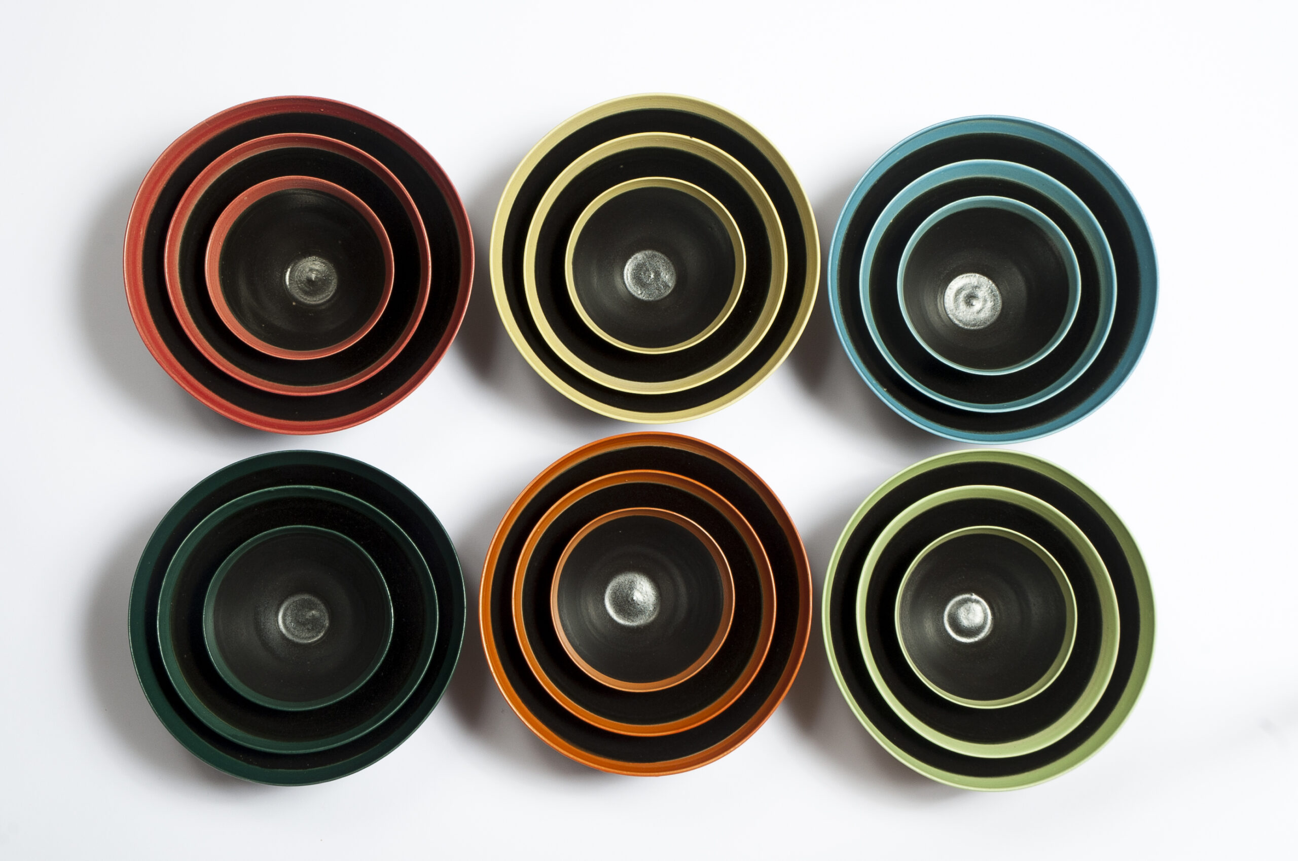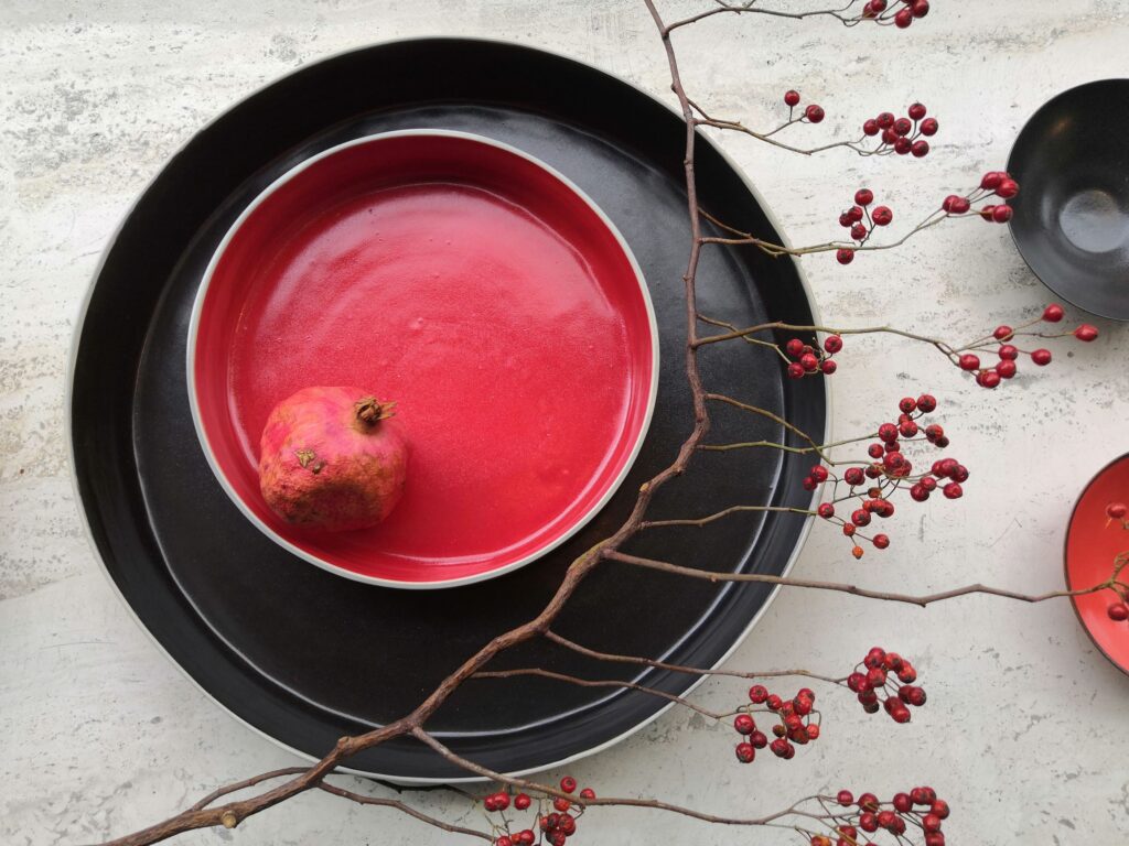 Ich fertige Geschirr für den täglichen Gebrauch in den Grundfarben weiß und schwarz mit jeweils farbigen Akzenten. Alle Farben passen gut zueinander und können gut miteinander kombiniert werden, auch z.B. helle Teller und dunkle Schalen. Gerne können Sie sich Ihre Wunschfarben aussuchen und die Farbgebung selbst festlegen.