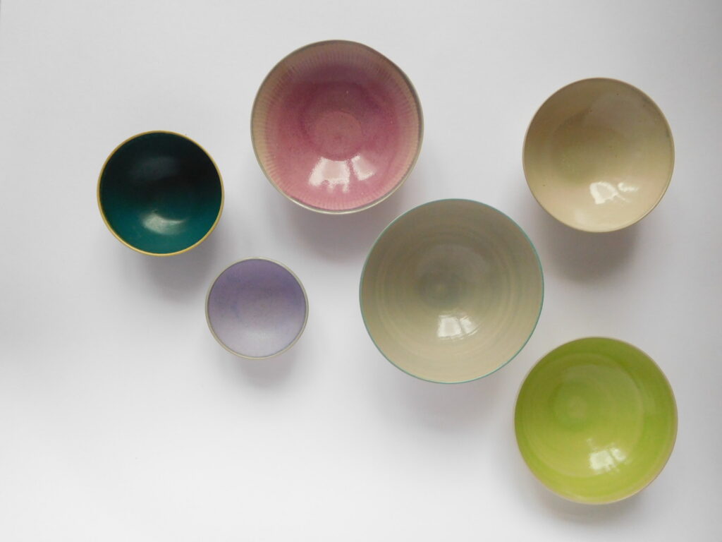 Die dünn gedrehten Teller, Tassen und Schalen nimmt man gerne in die Hand und machen gute Laune. Natürlich dürfen sie in der Spülmaschine gereinigt werden.